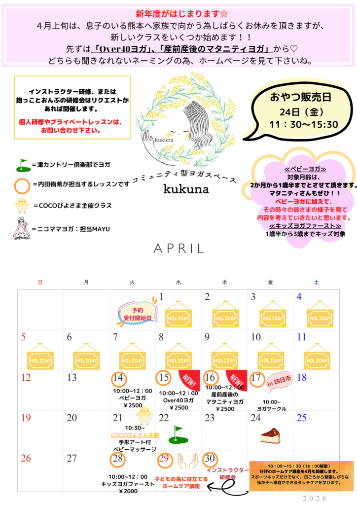 kukunaでのヨガクラスを待ってましたとばかりに、噂を聞きつけた皆さんからお問い合わせを頂いているので…子育てにひと段落した方も参加して頂けるようにしました😊