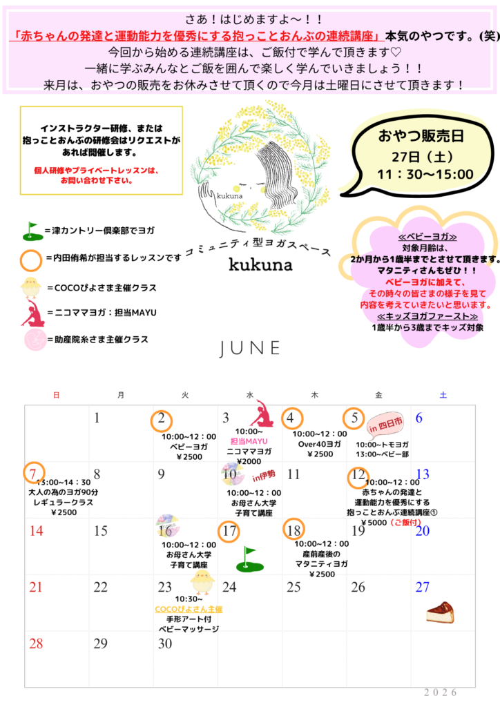 6月のレッスンのご案内です。
